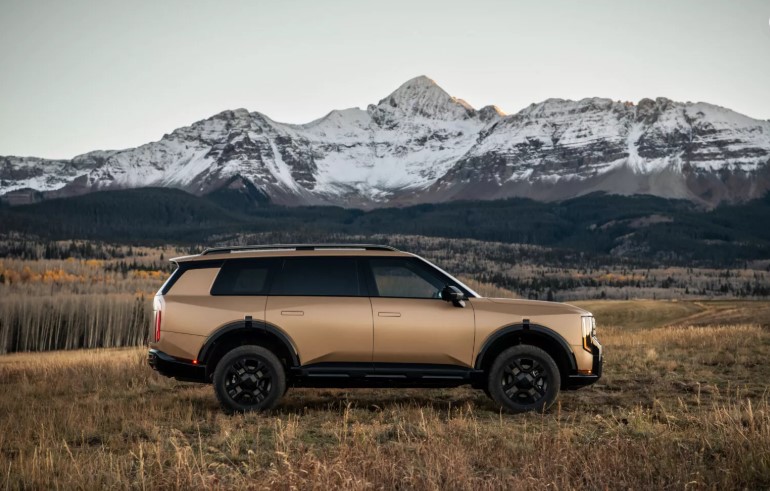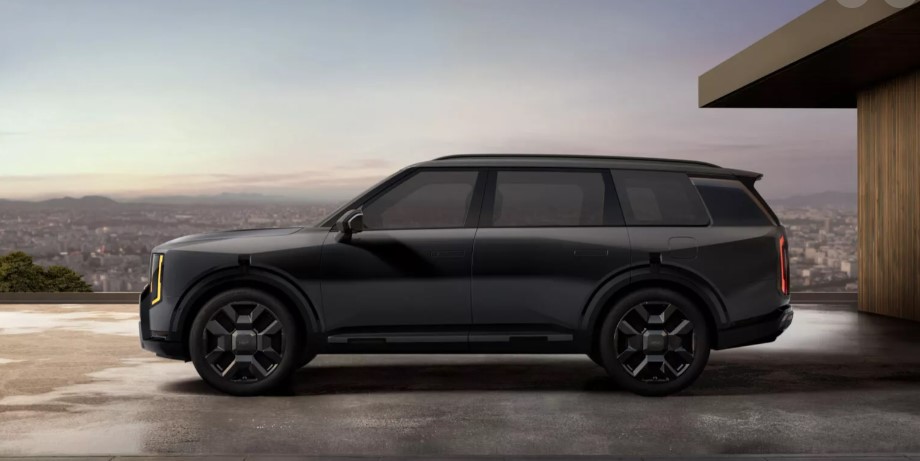 SUV став більш квадратним із чистими поверхнями та м’яко розширеними крилами. Відсутні вигини на D-колонці та поперечна світлова смуга, які були характерні для EV9.