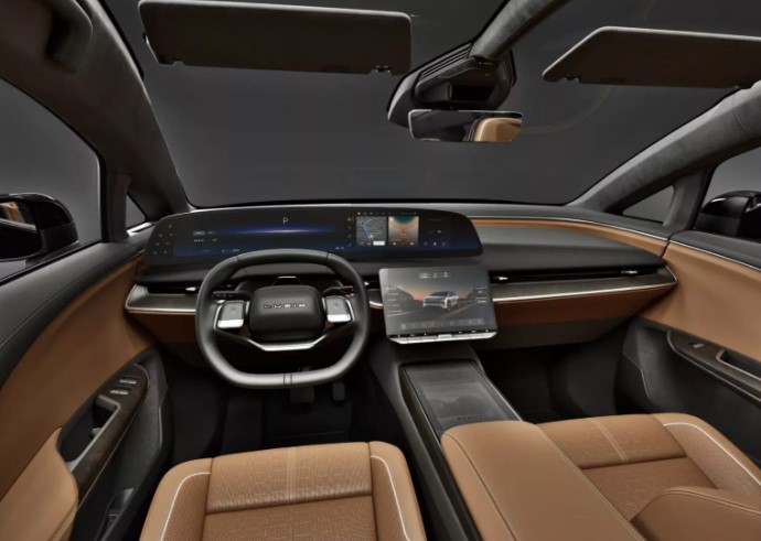 Усередині — п’ять місць з оббивкою PurLuxe. Передні сидіння з підігрівом регулюються у 12 напрямках. Салон оснащений 34-дюймовим вигнутим дисплеєм і нижнім 12,6-дюймовим сенсорним екраном.