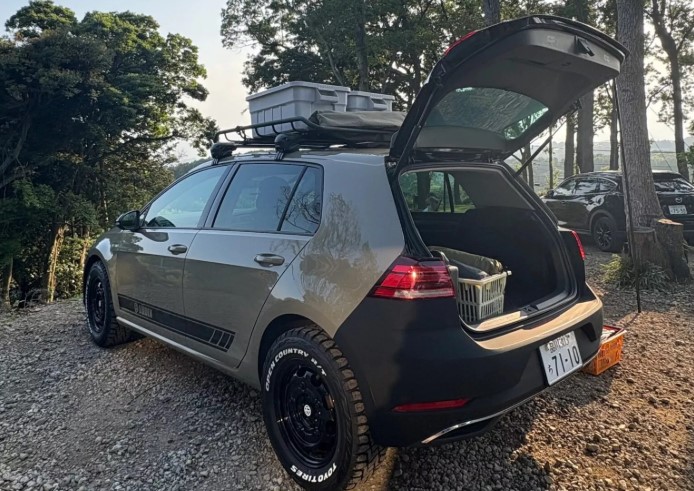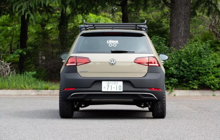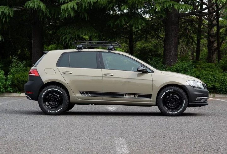 Авто ставлять на чорні сталеві колеса з “зубастими” всюдихідними шинами. Підвіску підіймають. Кліренс зростає приблизно на 70 мм, тож Golf стає вищим навіть за Tiguan.