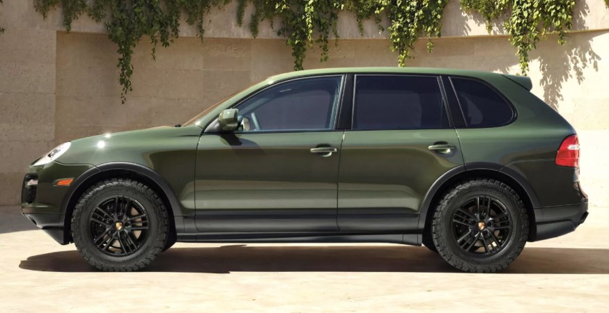 Цей Cayenne отримав фарбу Blackolive за індивідуальним замовленням, що надає йому ретро-стилю і чудово підходить до його характеру. Нижня частина кузова та диски виконані у матовому чорному кольорі і тепер оснащені новими позашляховими шинами.