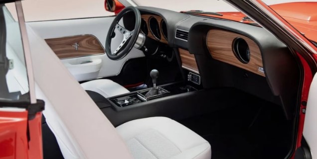 Під яскравим кольором Lava Orange ховаються нові сталеві панелі, виготовлені за сучасними технологіями штампування, зварювання та термообробки. Зовні — історичний Mustang, а всередині — повністю нова, набагато жорсткіша конструкція.