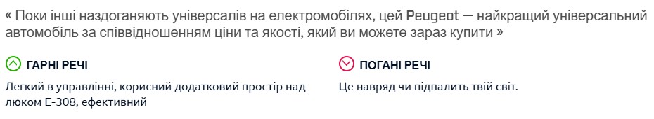 На тлі конкурентів француз виглядає «моднішим» і приємнішим усередині. Astra стала кращою, але поки трохи програє у відчуттях. MG5 практичний, проте простіший у всьому. А якщо потрібна максимальна практичність — можна подивитися на Citroen e-Berlingo чи молодший, але дуже місткий Kia PV5.