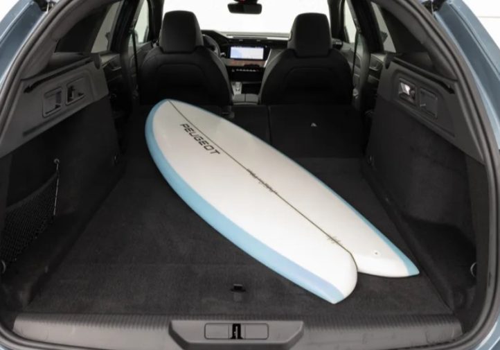 Авто побудоване на платформі Stellantis EMP2 V3, яку також використовують DS 4 і Vauxhall Astra. Усе хороше, що було в електричному хетчбеку E-308, перекочувало й у більший універсал. Ніяких «космічних» рішень чи захмарної потужності — тут 154 к.с. і 270 Нм, але при цьому зручність і логічність у кожній деталі. Після рестайлінгу з’явилися світлодіодні елементи в решітці та підсвічений логотип Peugeot — опційно.
