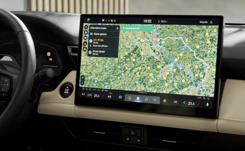 Mazda прагне мінімізувати всі відвертальні фактори – візуальні, ручні та когнітивні. І, видається, 15,6-дюймовий дисплей на панелі приладів вони вважають найкращим способом досягти цього.