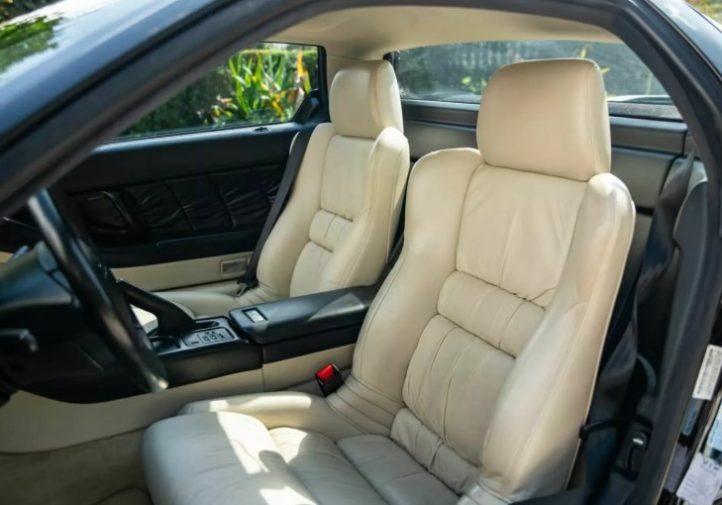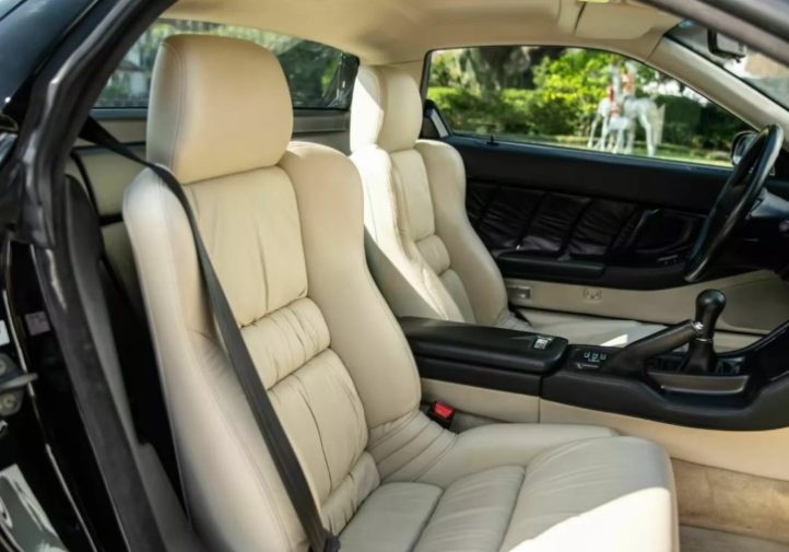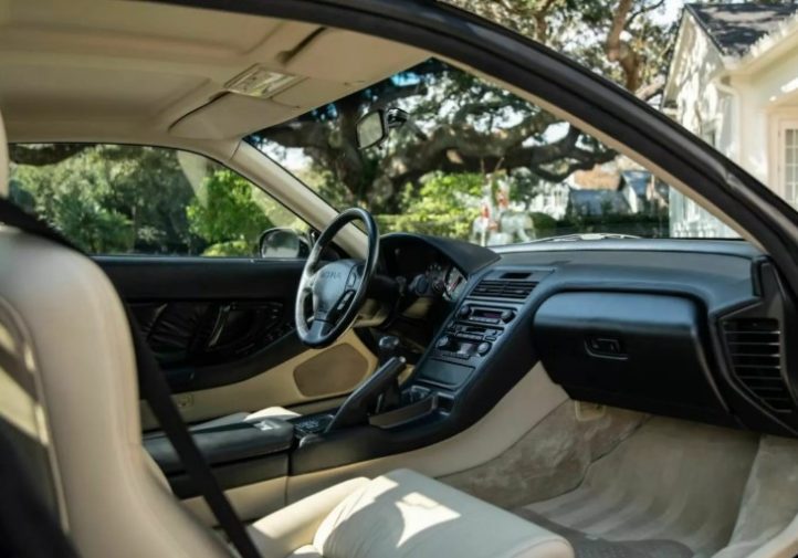 Салон також виглядає дуже добре. Сидіння типу «ковш», нижня частина тунелю коробки передач і дверні панелі обшиті шкірою кольору слонової кістки, яка зберегла свій вигляд навіть після років експлуатації. Чорна панель приладів теж у відмінному стані та не має серйозних тріщин.