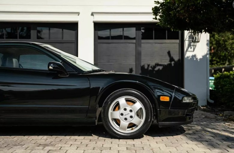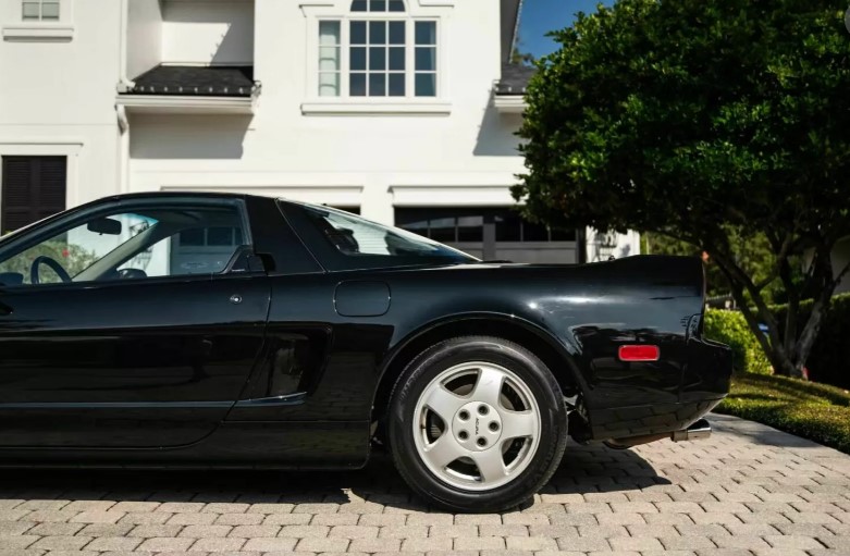 Цей NSX пофарбований у чорний колір і залишився повністю оригінальним. Він стоїть на заводських п’ятиспицевих сріблястих дисках і на шинах Hankook Ventus V2 Concept 2 для всіх сезонів. Легко закохатися в цю машину, адже вона зберегла всю свою початкову чарівність.