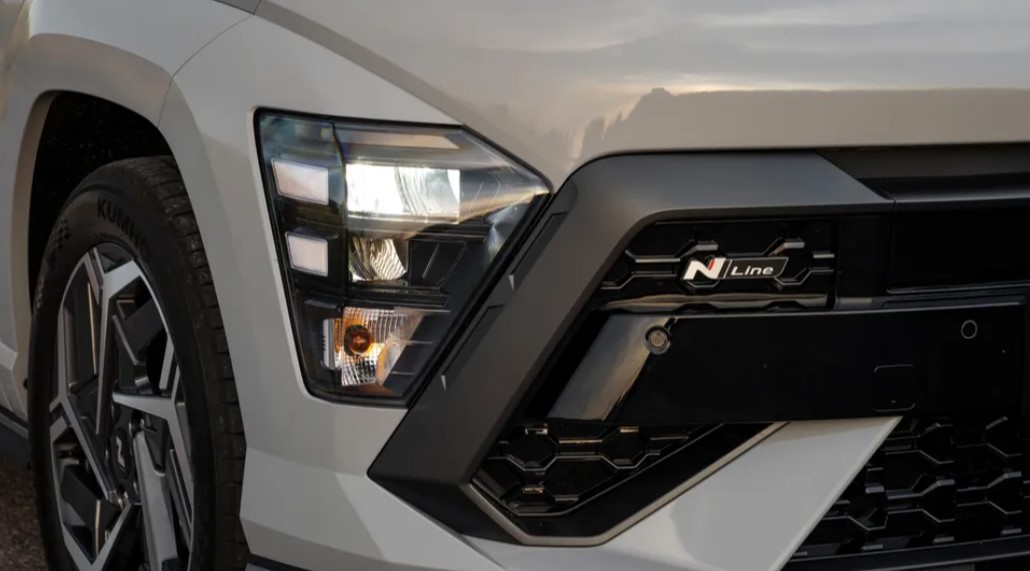 Перед нами Hyundai Kona другого покоління. І якщо перша Kona виглядала сміливо, то нова пішла ще далі. Дизайн став ще більш зухвалим, а головна фішка — суцільні світлові смуги спереду і ззаду, ніби з науково-фантастичного фільму.