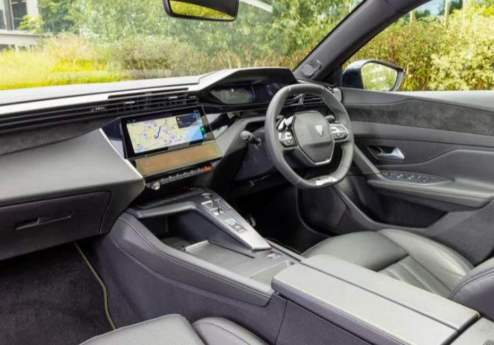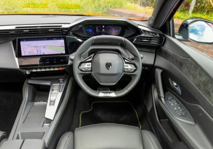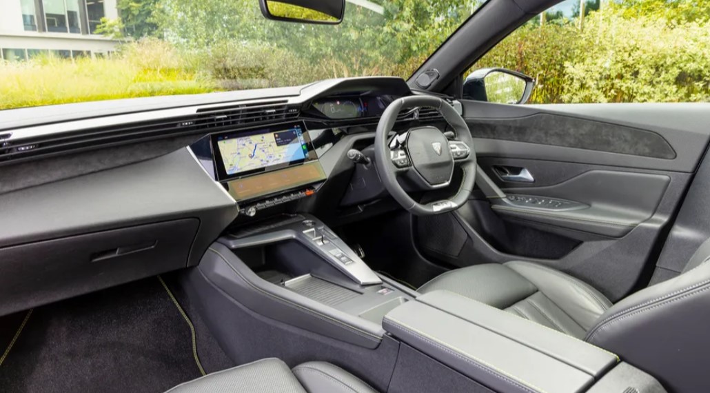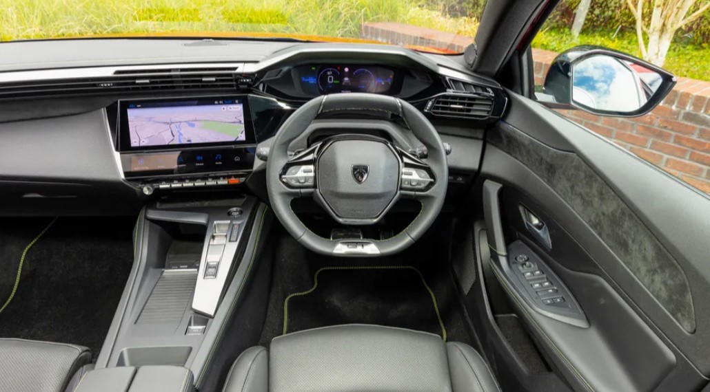 Атмосфера темна й затишна. Є зелена контрастна строчка, компактне кермо та цифрова панель — фірмовий стиль Peugeot. Посадка підійде не всім, але при зрості 175 см усе комфортно. Маленьке кермо додає відчуття жвавості.