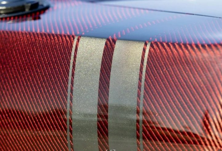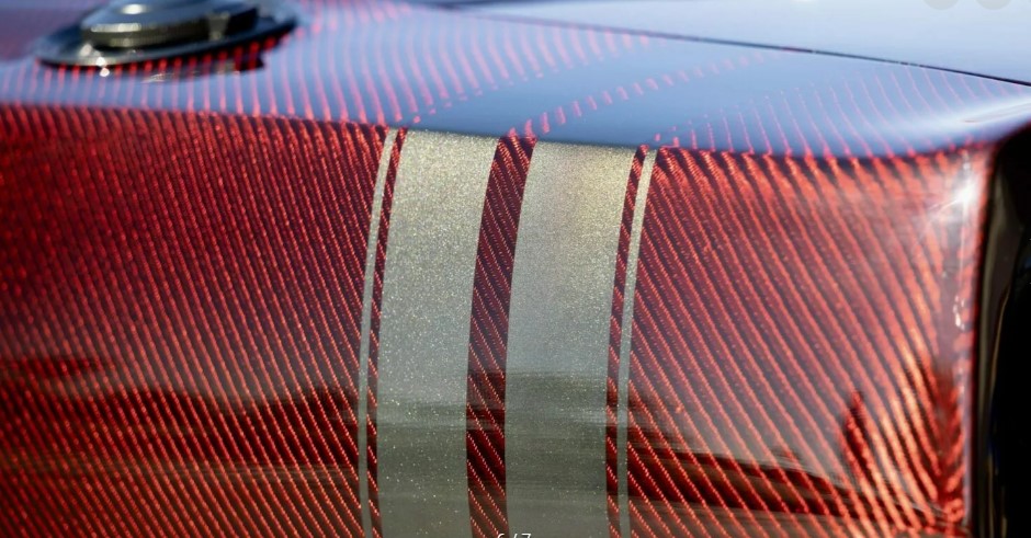 Головна зірка проєкту — кузов. Він повністю виконаний із карбону з темним відтінком Kandy Apple Red. Класичні форми поєдналися з сучасними матеріалами.
