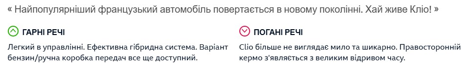Механіка для новачків, простий і ефективний гібрид, сучасні технології та економічність — усе це на місці. Не дарма з 1990 року продано майже 17 мільйонів Clio.