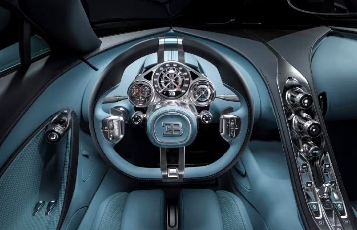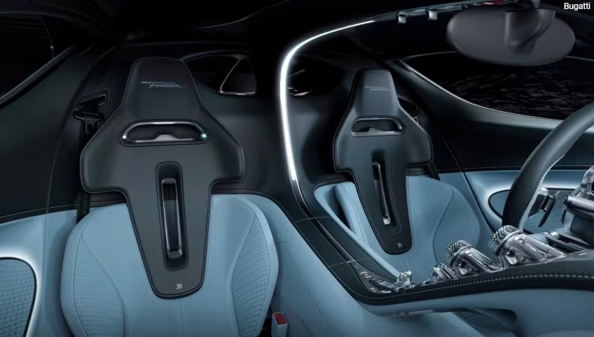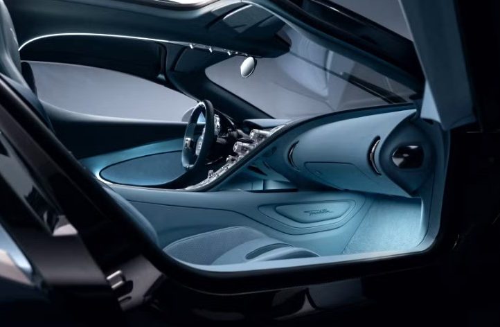 У салоні Bugatti Tourbillon нічого не залишено випадку. Навіть діедральні двері обрали не просто так: автомобіль нижчий за Chiron, який він замінює, і звичайні двері зробили б посадку незручною та менш елегантною.