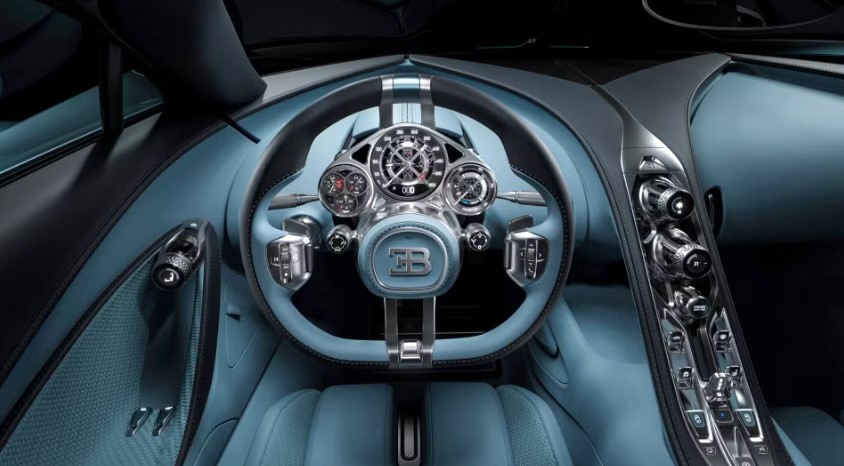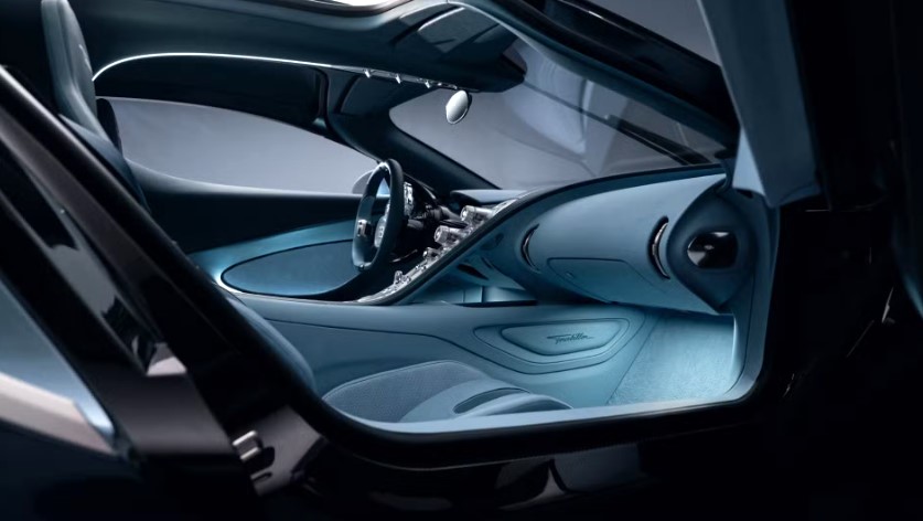 У салоні Bugatti Tourbillon нічого не залишено випадку. Навіть діедральні двері обрали не просто так: автомобіль нижчий за Chiron, який він замінює, і звичайні двері зробили б посадку незручною та менш елегантною.