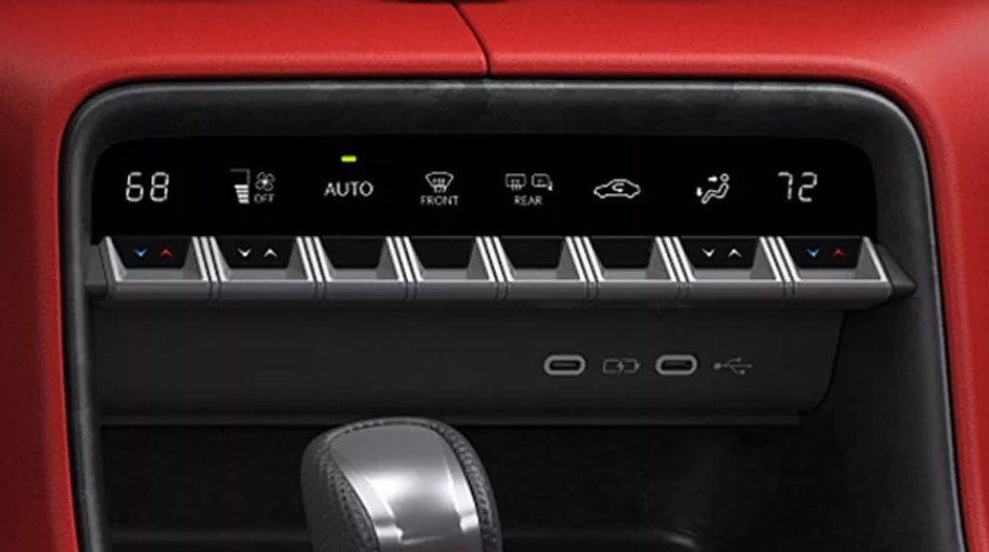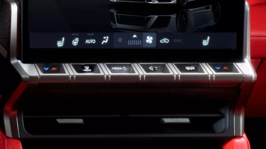 Схожість не випадкова. Перше, що впадає в око, — оббивка сидінь у відтінку, дуже близькому до фірмового Radiant Red від Lexus. Але найбільше питань викликають повітряні дефлектори. Вони виглядають так, ніби їх просто взяли з салону IS без серйозних змін.