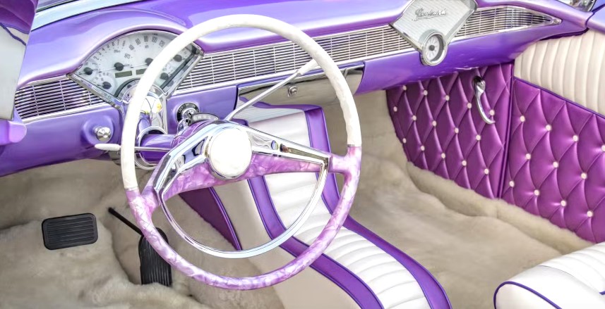 Машина працює на повітряній підвісці, що додає комфорту та ефектності. Але колеса – не сучасні після ринкові: це справжні Packard 15×6 із дротяними спицями та білими шинами Coker, які зберігають дух оригінальної класики.