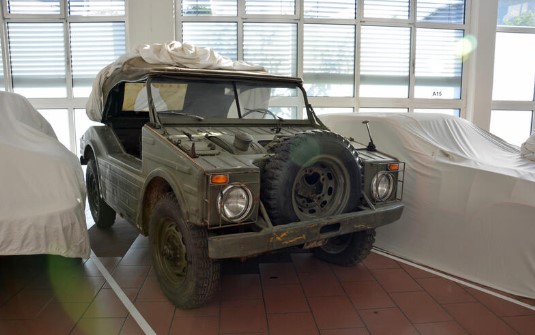 У 1955 році новостворена армія Західної Німеччини шукала недорогий повнопривідний автомобіль на кшталт Willys Jeep. Porsche відповіла моделлю 597 — своїм першим позашляховиком. Це був простий, утилітарний автомобіль з опозитним двигуном від Porsche 356, встановленим позаду.Втім, держзамовлення Porsche не отримала: Jagdwagen виявився надто дорогим у виробництві, а компанія не могла швидко налагодити масовий випуск. Контракт дістався DKW Munga.