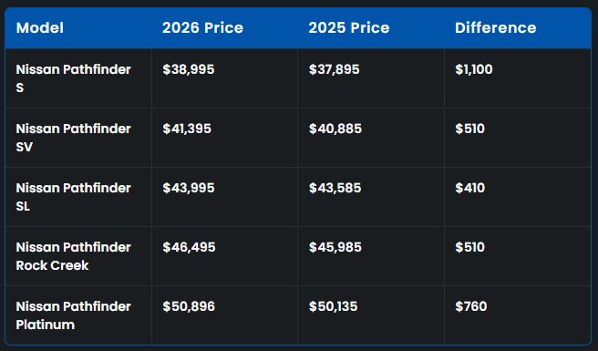 Базова версія Pathfinder S тепер стартує від $38 995 – на $1 100 більше, ніж торік.