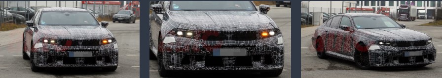 Спереду у цього прототипу, найімовірніше, встановлені тимчасові фари, а не серійні. Проте форма вже помітно змінюється: зовнішні краї тепер нахилені донизу, а не вгору, як раніше. На думку автора, таке рішення робить M5 схожим на класичний BMW M5 E34 із “акулячим носом”, додаючи суперседану більш агресивного характеру.
