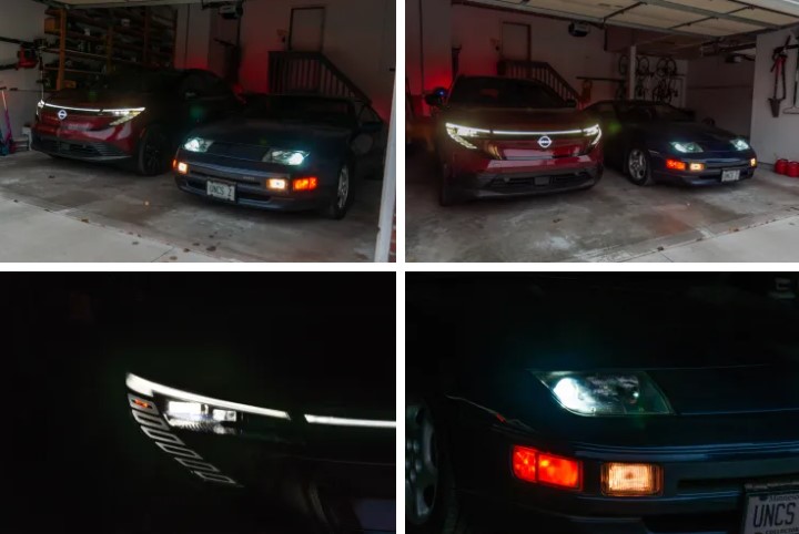 Ще цікавіше побачити менш очевидні дизайнерські впливи на передній частині Leaf. Корпуси LED-фар Leaf мають форму горизонтального прямокутника — точно як дальнє світло Z32 300ZX, яке також було горизонтальним прямокутником, розташованим всередині проєкторних фар ближнього світла.