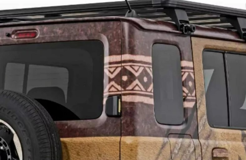 За основу взяли п’ятидверний Jimny, який отримав яскравий індивідуальний вініл. Образ доповнюють: