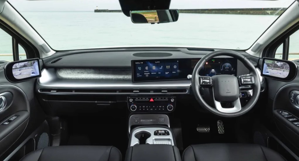 Посадка за кермом Ioniq 9 не всім підійде. Крісло розкішне, з масажем і вентиляцією, але кермо має замалий діапазон регулювань. Камери замість дзеркал допомагають аеродинаміці, та у місті вони ускладнюють життя — паркування й перестроювання потребують звички й довіри до техніки.
