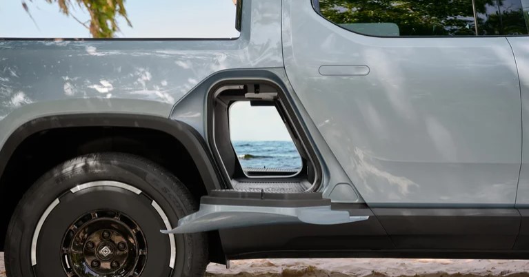 Rivian придумала одну з найнестандартніших фішок серед пікапів — Gear Tunnel. Це тунель під кузовом між задніми колесами, який дає 11,6 куба. футів додаткового місця. Доступ до нього є з обох сторін і навіть через дверцята за середнім заднім сидінням.
