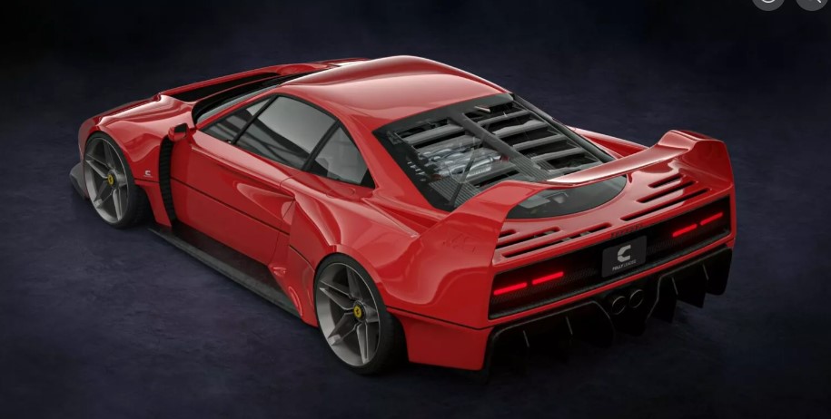 Позаду трансформація не менш радикальна. Над кормою вигинається нове крило, а внизу — гігантський дифузор у стилі автоспорту. Вихлоп також інший. Навіть ліхтарі F40 осучаснили. Замість класичних блоків — тонкі LED-елементи, які повністю стирають будь-яку ностальгію за 80-ми.