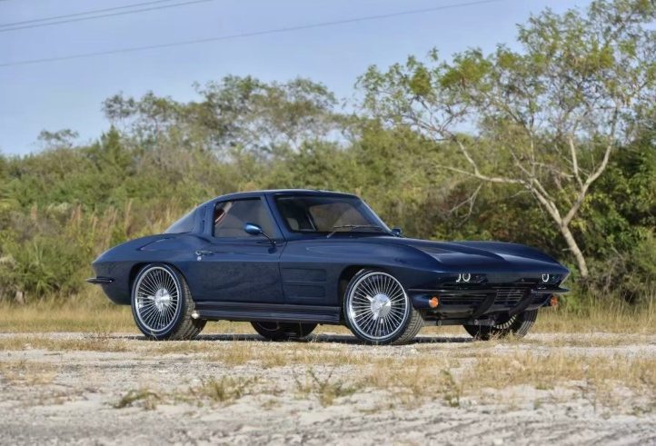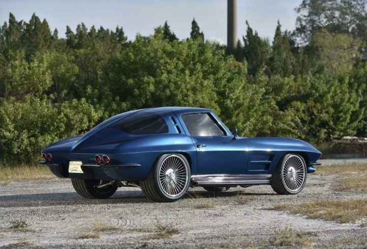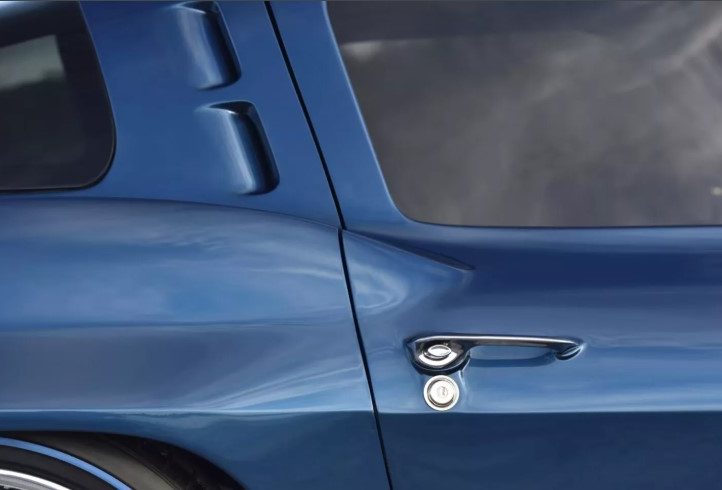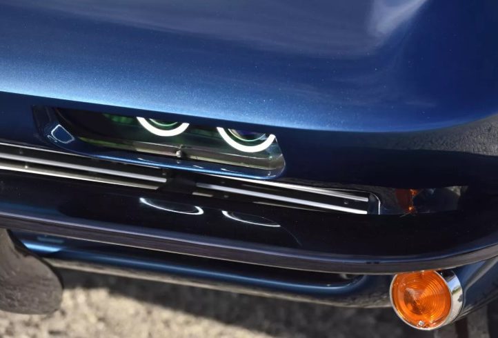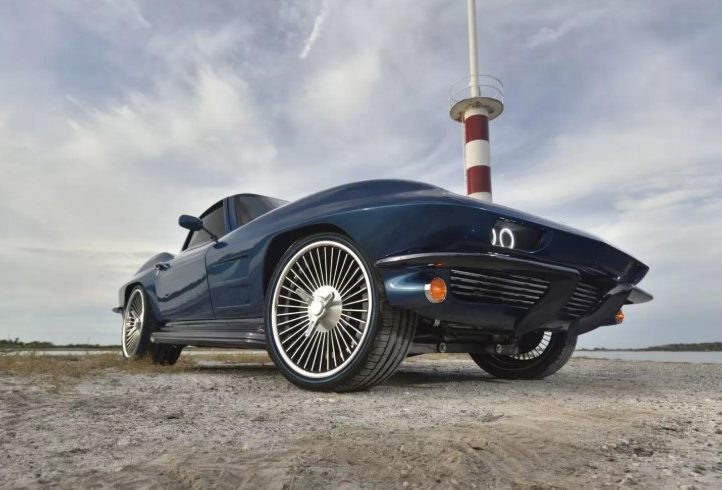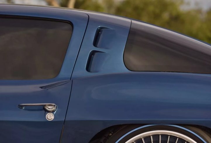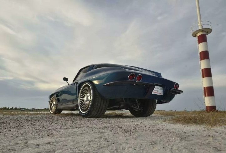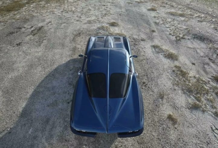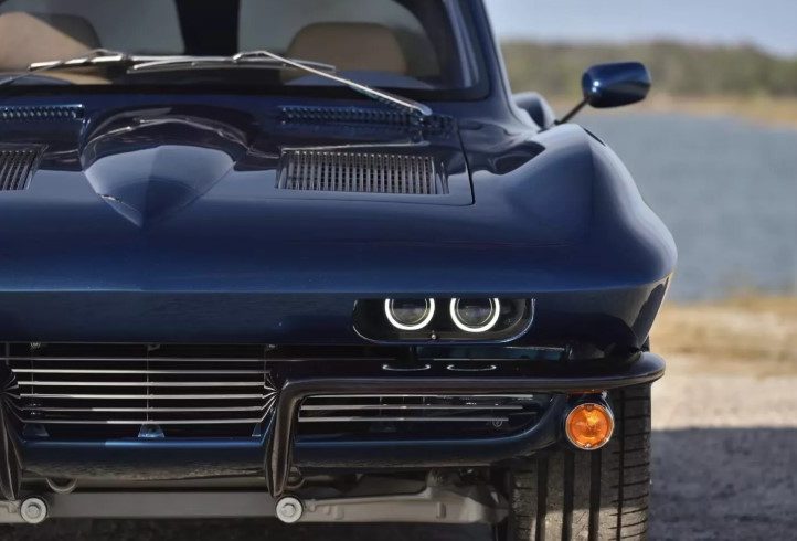 Зовні це безпомилково Stingray 1963 року, але з відчутно сучасним прочитанням. Фірмове розділене заднє скло залишилося, а от фари — зовсім інші. Для кузова Брок обрав відтінок Ferrari Azzurro California Blue, який додає авто глибини й характеру.