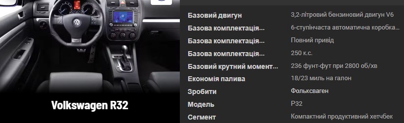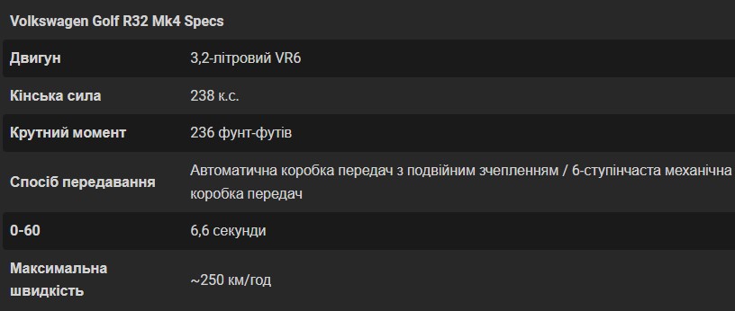 Пошарпані Mk4 Golf R32 можна знайти за $10,000, а найкращі екземпляри — близько $30,000. Це потужний і рідкісний Golf, який відрізняється від GTI та відзначився важливим технічним проривом у світі авто.