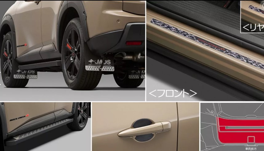 Для тих, хто хоче ще сильніше підкреслити пригодницький характер кросовера, Nissan пропонує пакет Sotoasobi. Він додає матово-чорний капот, накладні розширювачі колісних арок і унікальні емблеми. Вигляд стає помітно агресивнішим і більш «позашляховим».