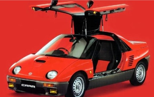 Suzuki Cara – це перейменований Autozam AZ-1, крихітний спортивний kei‑кар з “крилами чайки”, розроблений Mazda. Історія цікава: спершу це був прототип Suzuki, який відклали на користь менш радикального Cappuccino, а потім його доробила Mazda. Автомобіль мав той самий турбований трициліндровий 657 см³ двигун, що й Cappuccino.