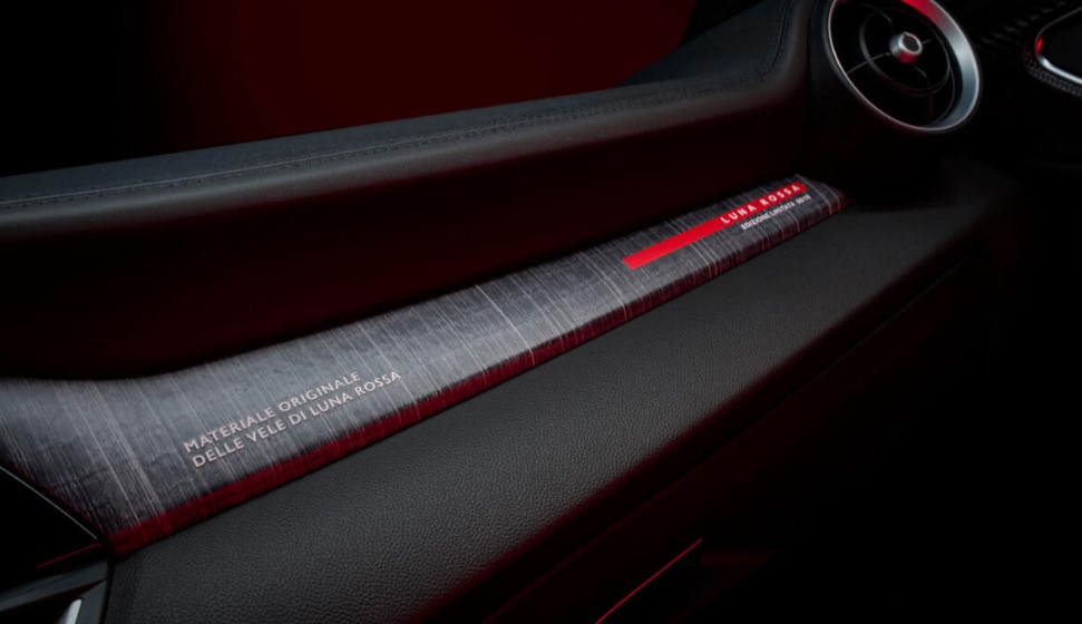 Всередині автомобіль отримав сидіння Sparco, натхненні рятувальними жилетами команди Luna Rossa. Сірі сидіння з червоною смужкою по центру перегукуються із зовнішнім кольоровим варіантом авто. Така комбінація створює відчуття спортивного кокпіту та стилю преміумклас.