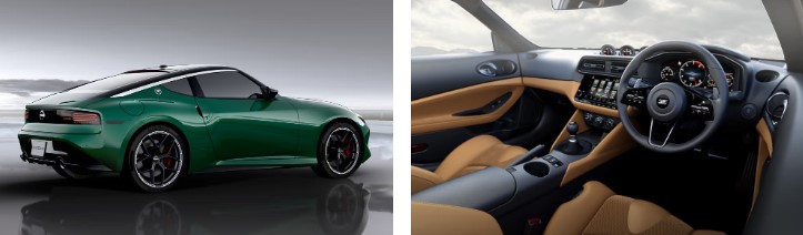 За офіційними фото видно, що Z отримав новий колір кузова – насичений Unryu Green. Автомобіль також отримав нові 19-дюймові диски з чорними спицями та хромованим обідком.