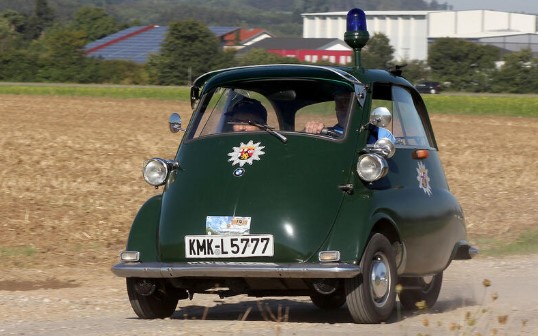 Більшість німецьких поліцейських їздили на крихітній BMW Isetta з двоциліндровим 298 cc двигуном – повільно, але дуже помітно.