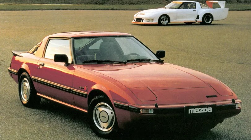 Круглий трикутник на кермі пізніх RX-7 80-х був натяком на форму ротора у двигуні Ванкеля. Ні, високих витрат масла на фото не показано.