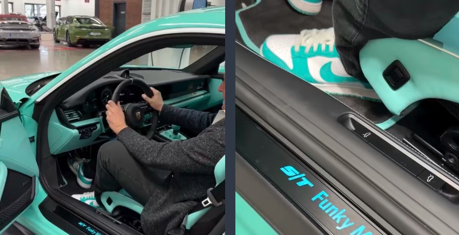 Фінальний штрих — підсвічувана накладка порога з написом “S/T Funky Minty”. Вона чітко дає зрозуміти: це не чергова конфігурація з каталогу, а справжній one-off, який існує поза стандартними правилами Porsche.