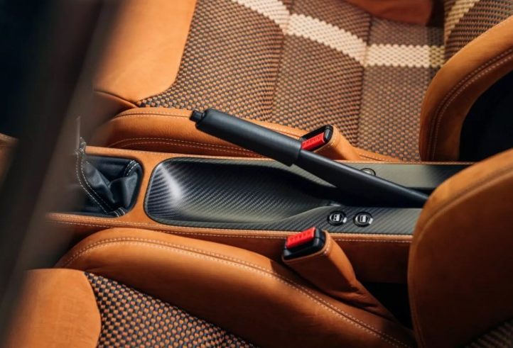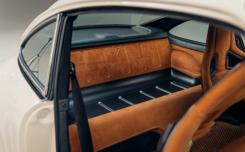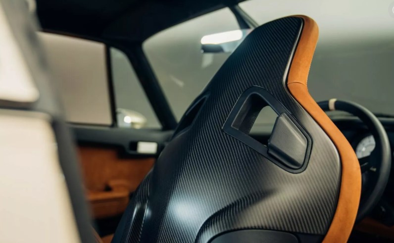 Всередині зміни не менш виняткові. Сидіння Recaro CS з карбоновою спинкою обтягнуті шкірою Tobacco nubuck, а шви виконані в Ivory, повторюючи зовнішні смужки.