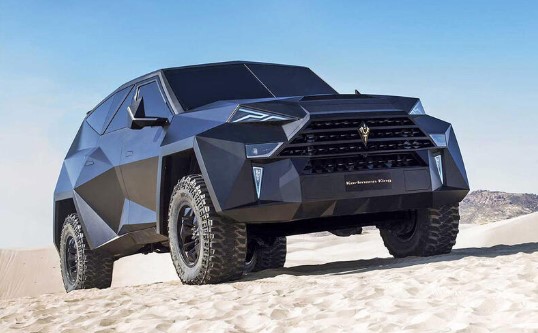 Уявіть, як бачите, Karlmann King у дзеркалі заднього виду на середній смузі. Цей гігантський SUV коштує від £1,5 млн, а броньована версія ще дорожча.