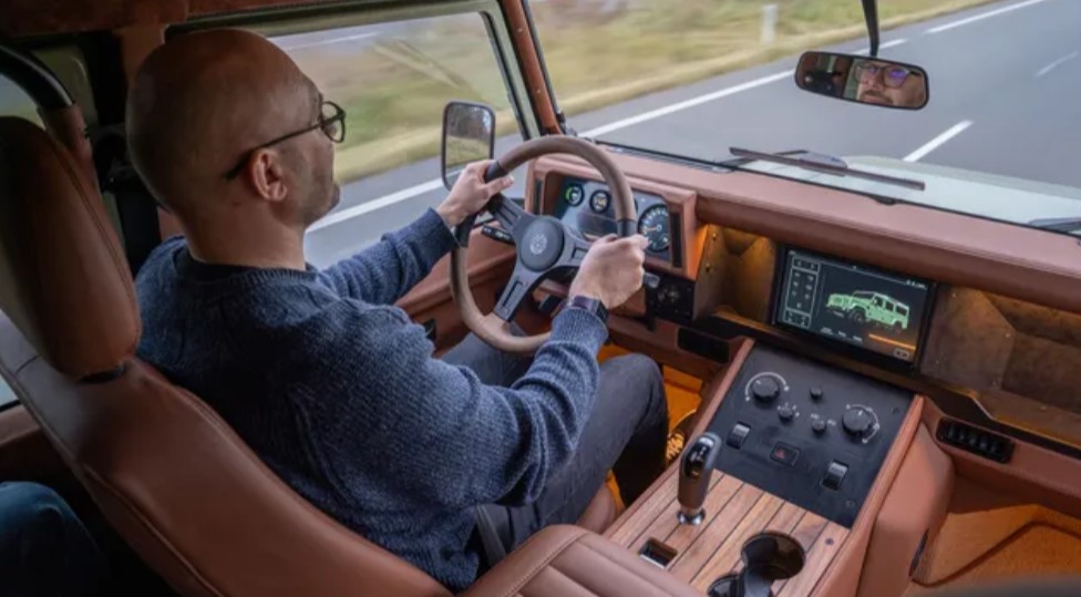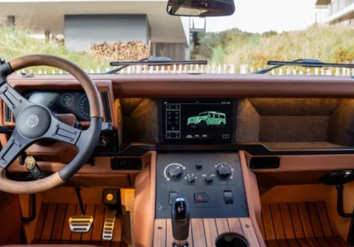 На перший погляд — так. Це класичний Land Rover Defender, відновлений до ідеалу, з новою технікою, розкішною шкірою та алюмінієвим оздобленням. Звучить знайомо. Але не поспішайте з висновками.