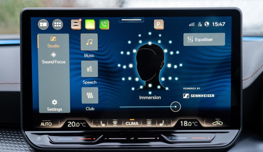 У мультимедійній системі Cupra Leon є сторінка Sennheiser Studio, де можна знайти: