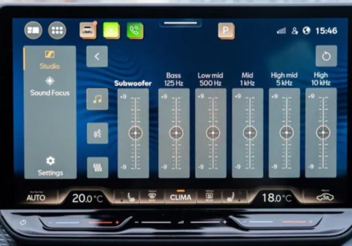 Система дарує чисте звучання голосів підкастів та широку, насичену музику. Тут не просто гучність — музика має об’єм, глибину і деталі. Стерео складається з 12 динаміків, включаючи сабвуфер. У нашому авто сабвуфер розташований під підлогою багажника у відсіку для запасного колеса. Це означає, що місце для щоденних речей не зменшене — але доведеться обійтися без нього, якщо трапиться прокол.