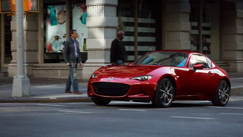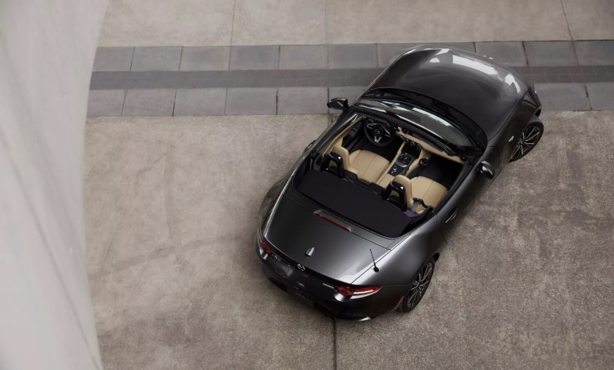 Хоч новинок небагато, нагадуємо: MX-5 Miata оснащена світлодіодними фарами, подвійним вихлопом і м’яким дахом зі скляним заднім вікном. Базова версія отримала 16-дюймові легкосплавні диски з металевим чорним покриттям.