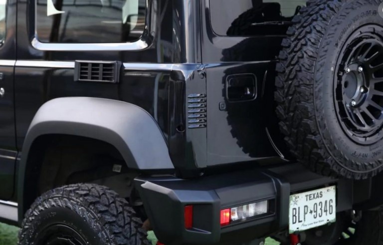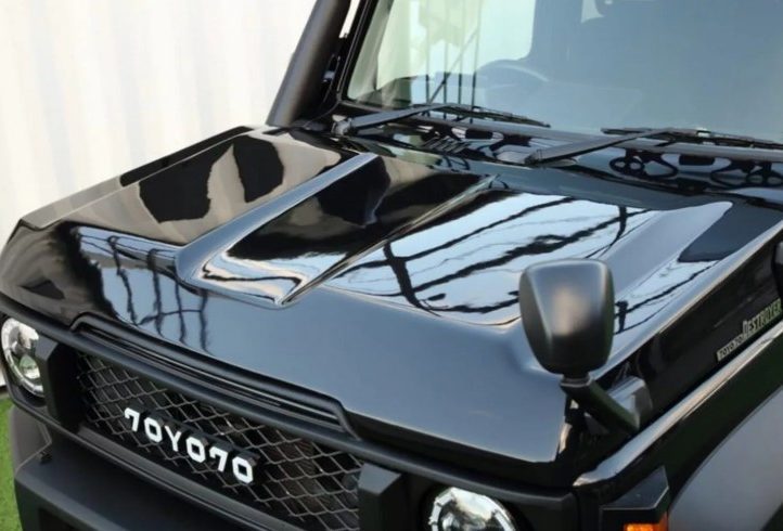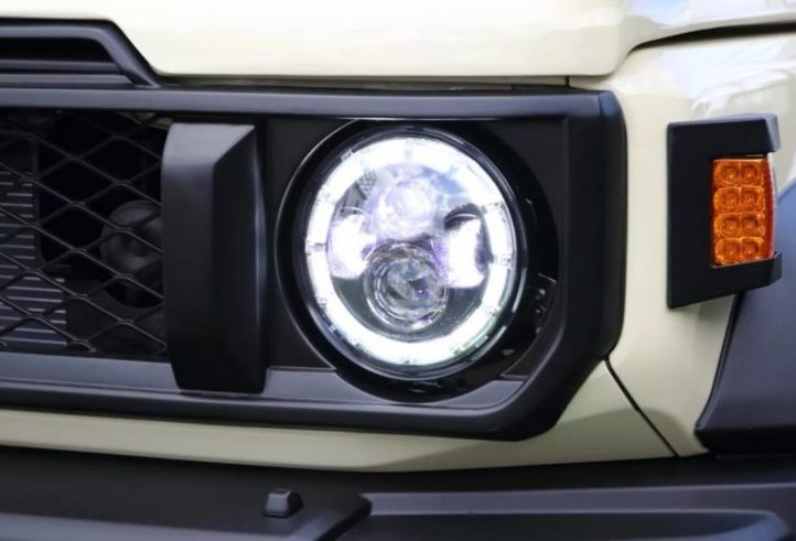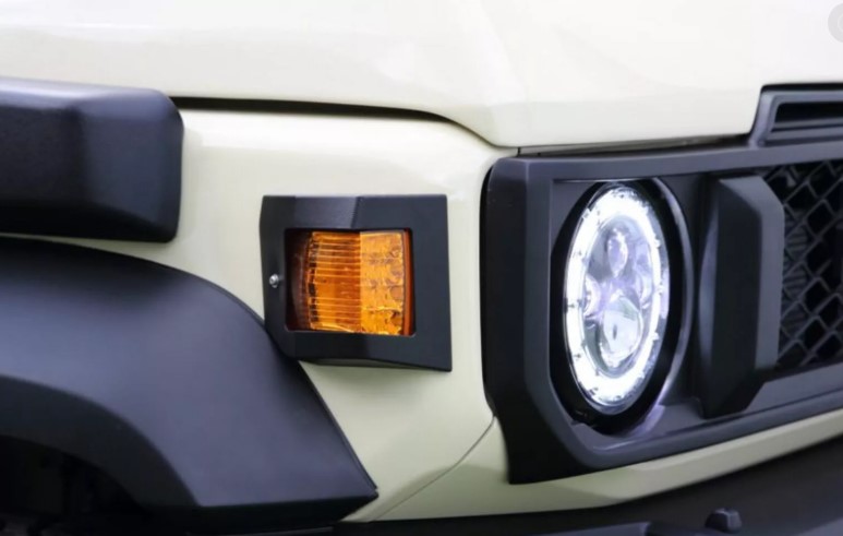 Передній бампер запозичили у Jimny Sierra, але решта — унікальна. Нова решітка радіатора, круглі LED-фари та поворотники у вінтажному стилі зроблені так, щоб максимально нагадувати оновлений Land Cruiser 70 Series.