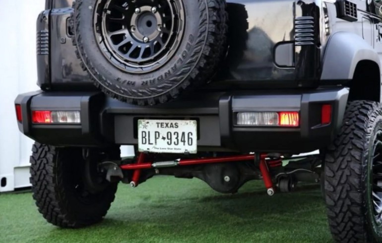 Ілюзія Land Cruiser 70 тут працює не лише спереду. Основні кузовні панелі залишилися стандартними, але автори проєкту додали низку влучних штрихів. На боковинах з’явилися додаткові вентиляційні елементи, ззаду — декоративні «фальш-решітки», а також нові задні ліхтарі в ретро-стилі.