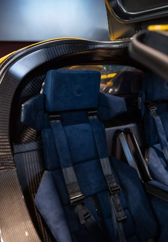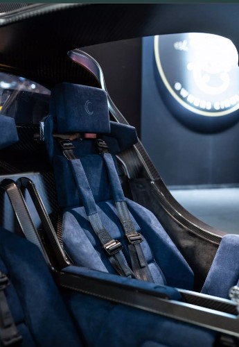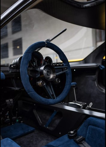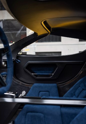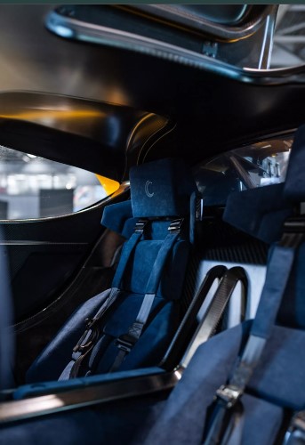 Салон Capricorn 01 Zagato справді вражає своєю аналоговістю. Тут класичні циферблати, «клітковий» важіль коробки передач і кругле кермо з обертальними регуляторами — так, це здається дрібницею, поки не побачиш сучасні «керма» на інших суперкарах. Два сучасні ковшоподібні сидіння доповнюють інтер’єр, а поєднання синьої замші та відкритого карбону робить його стильним та цілісним.