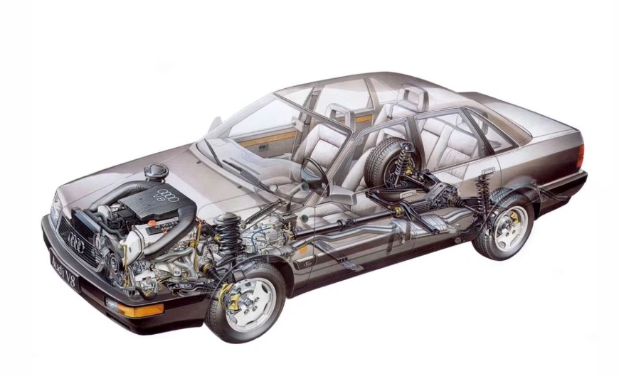 Щоб створити V8, Audi взяла платформу 200/5000, подовжила її, розширила колію та розробила свій перший двигун V8. Це спрощене пояснення, адже інженери вкладали неймовірну роботу, але для Audi це був справжній прорив.