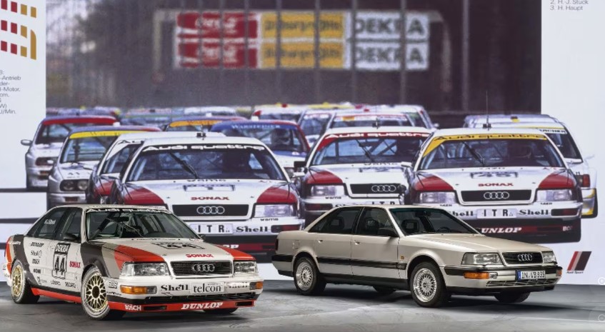 Щоб довести можливості V8, Audi вирішила виставити свій флагманський седан у DTM. Так, він змагався з набагато меншими суперниками, як BMW M3 E30 та Mercedes-Benz 190E 2.3-16. За розміром це був справжній «океанський лайнер» серед спортивних «швидкісних човників», але жарти закінчилися, коли автомобіль почав вигравати.