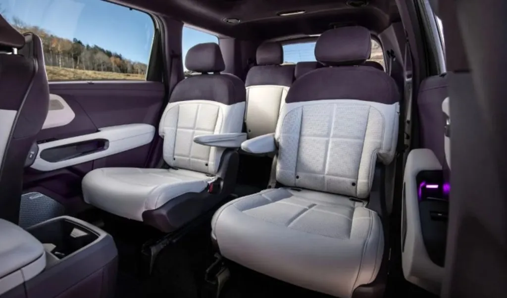 Баклажаново-кремовий салон доступний лише для нової гібридної моделі Telluride. Поверхні, схожі на шкіру, зроблені з матеріалу Syntex, який Kia вже використовувала на інших моделях. Він легкий у догляді й швидко очищається, що особливо важливо для сімейного автомобіля.