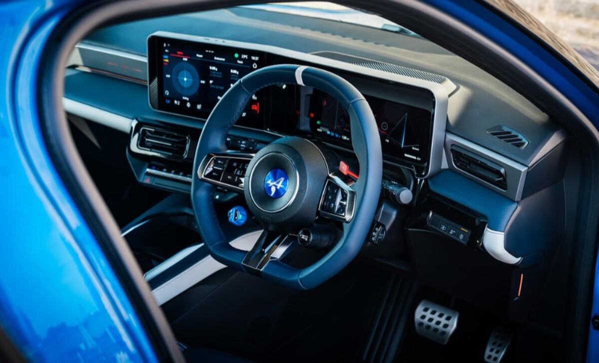 Салон виконаний у стилі гоночних машин Alpine F1: кнопки режимів, регенерації та “overtake” для короткочасного максимуму потужності. Інформаційна система відображає телеметрію та допомагає покращувати проходження поворотів.