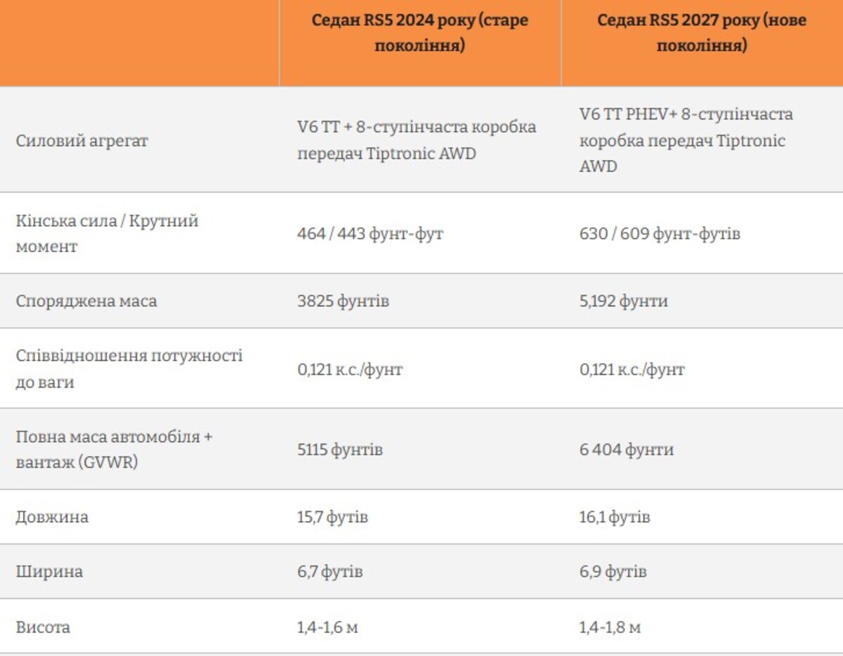 Фактично RS5 2027 — це приклад того, як сучасні спортивні автомобілі змінюють характер: менше «чистої механіки», більше електрифікації, але збереження цифр, які добре виглядають у технічній таблиці.