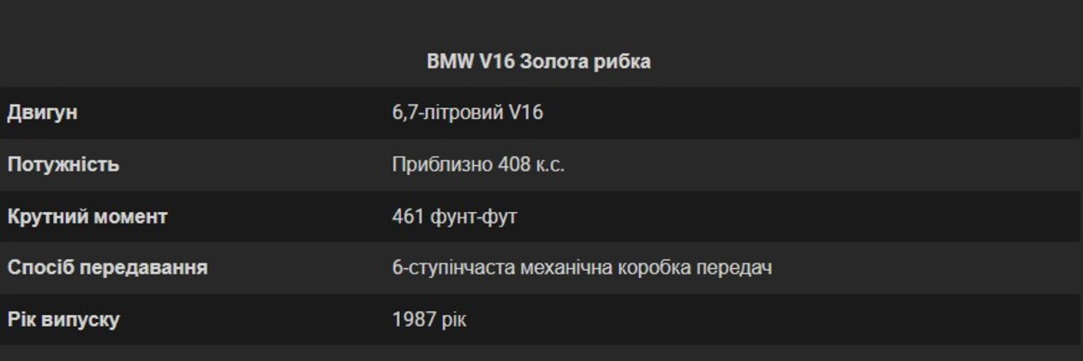 Двигуни V16 завжди були екзотикою. У різні десятиліття до них зверталися окремі виробники, але серійними такі мотори ставали вкрай рідко. Для BMW Goldfisch став доказом того, що бренд здатний мислити масштабно та не боїться ризикувати.